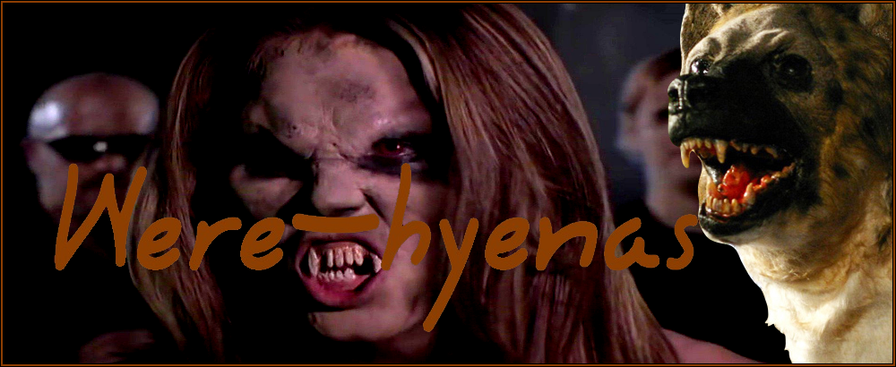 Powers/Abilities: Every night, a were-hyena can transform into a hyena, or something in between.