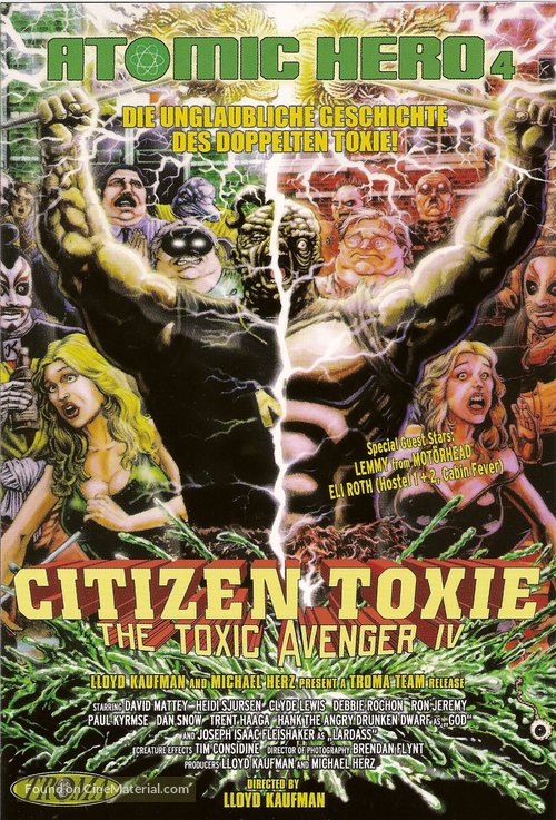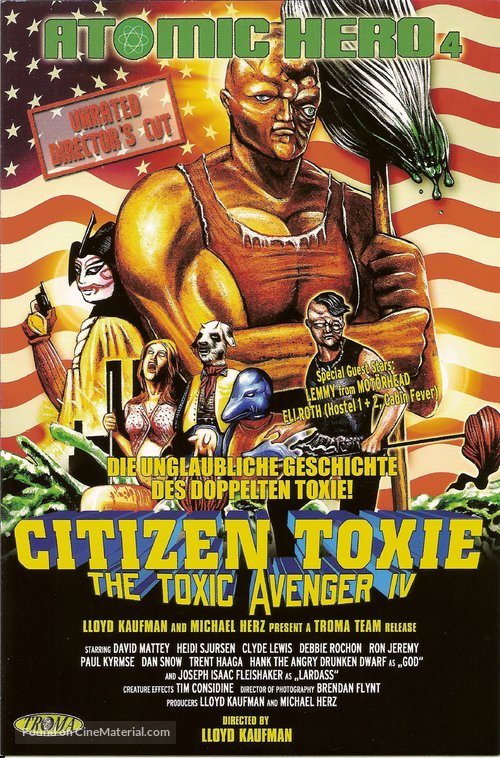 Films: The Toxic Avenger (1984), The Toxic Avenger Part 2 (1989), The Toxic Avenger Part 3: The Last Temptation of Toxie (1989), Citizen Toxie: The Toxic Avenger 4 (2000)
