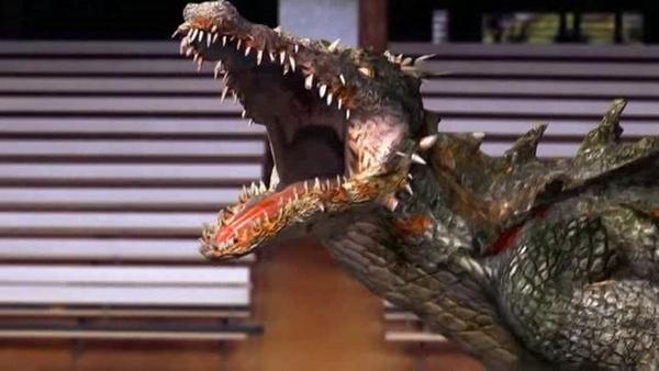 Scariness Factor: 3.5-As with his predecessor, Supergator is a menacing prehistoric throwback, albeit smaller and sleeker than the last one. Also, the effects are nowhere near as good, if you could call them good in the first place anyway. Not helping is being in bright daylight most of the time.