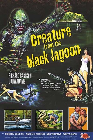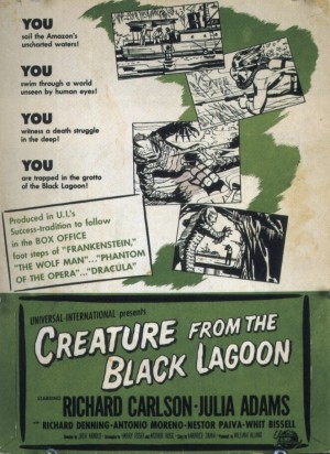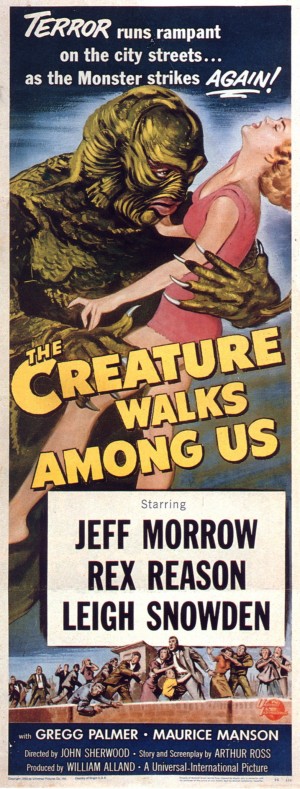 Films: Creature from the Black Lagoon (1954), Revenge of the Creature (1955), The Creature Walks Among Us (1956)