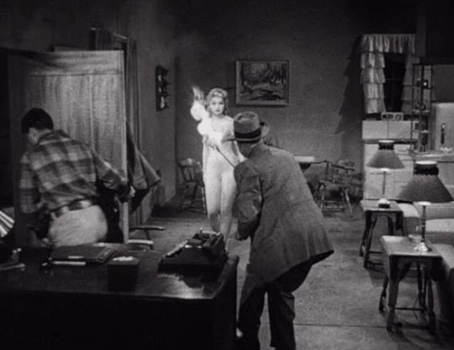 Final Fate: Eventually, the She-Monster gets an acidic substance to the chest, causing her to scream and fall to the floor, where she disintegrates. It is only now that the humans realize her true intentions. Bummer.