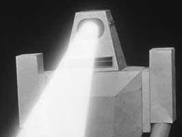 Powers/Abilities: As well as being impervious to bullets, the robots can emit a death ray from their singular eye, killing all who contact it.