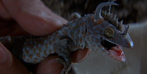 Final Fate: The vines prove to be just a bit irksome, the rhinoceros iguana just scares the team off, a tarantula gets shot, the frilled monitor and the giant caiman go hurdling off a cliffside after a long and brutal fight with each other, and the magma lizard gets showered in lava, going out with the eruption that follows. Oh, and a "Tyrannosaurus" (really, a poor gecko with horns glued onto it) egg is haphazardly brought along to London. Good luck with that, guys.