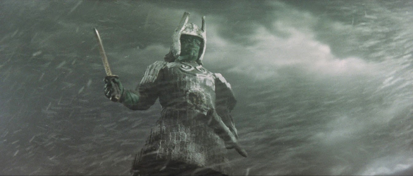 Powers/Abilities: Aside from being completely invulnerable, Daimajin can make the seas part with his mind! He also wields a sword on occasion.