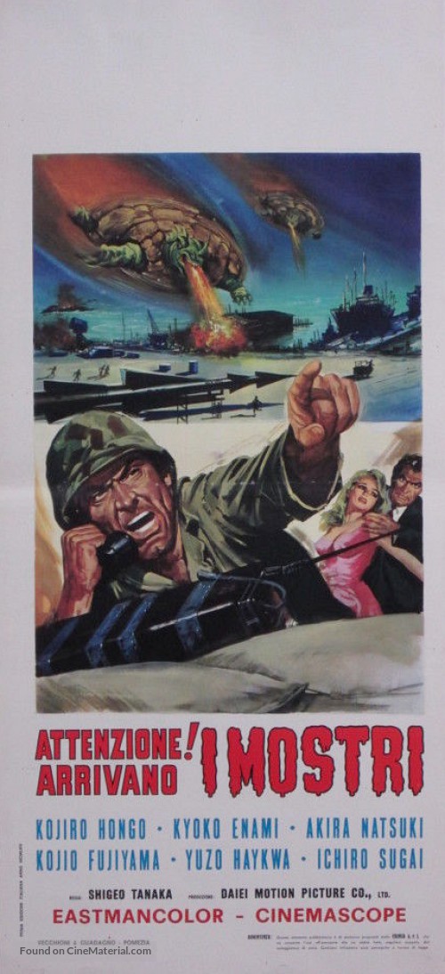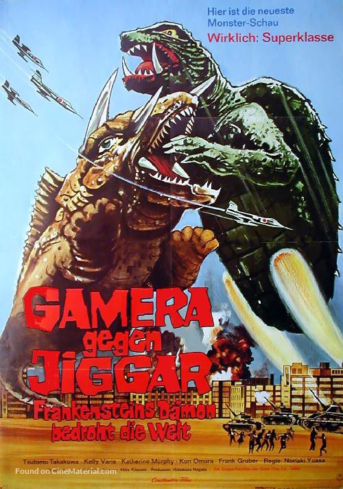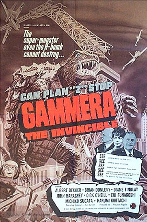 Films: Gamera: The Giant Monster (1965), Gamera Vs. Barugon (1966), Gamera Vs. Gyaos (1967), Gamera Vs. Viras (1968), Gamera Vs. Guiron (1969), Gamera Vs. Jiger (1970), Gamera Vs. Zigra (1971), Gamera: Super Monster (1980)