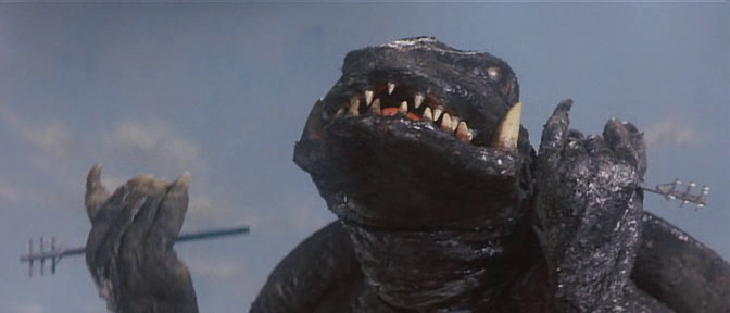 Powers/Abilities: Gamera can shoot fireballs from his mouth and even propel himself through the air by shooting flames out of his shell-holes. He can also be nimble enough to win a kaiju-sized Olympic medal.