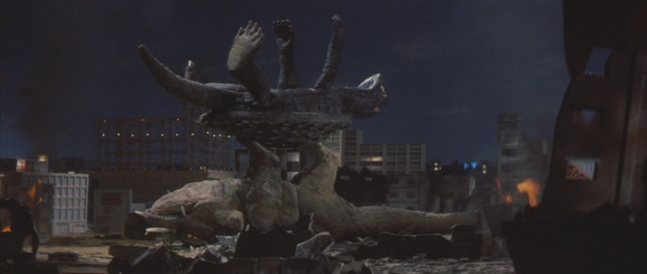 Trivia: -Yes, Daei's bankruptcy is the reason Gamera had to arbitrarily perish. Word says that their financial woes were due to some gross incompetence within the studio. How shameful for Gamera fans.