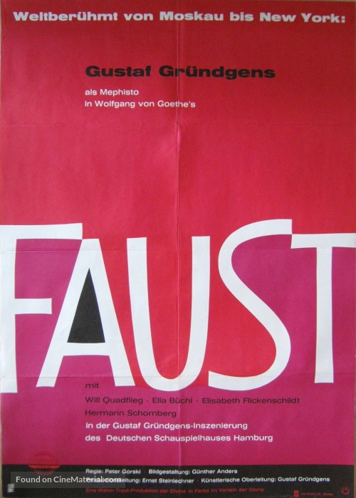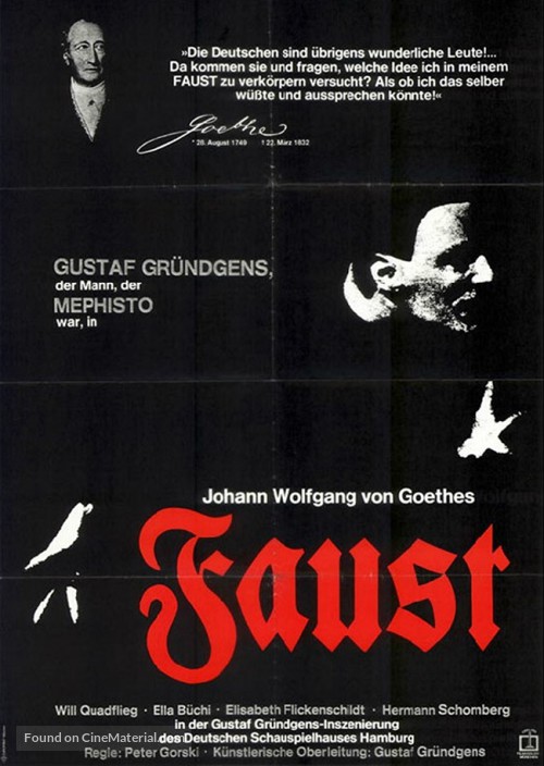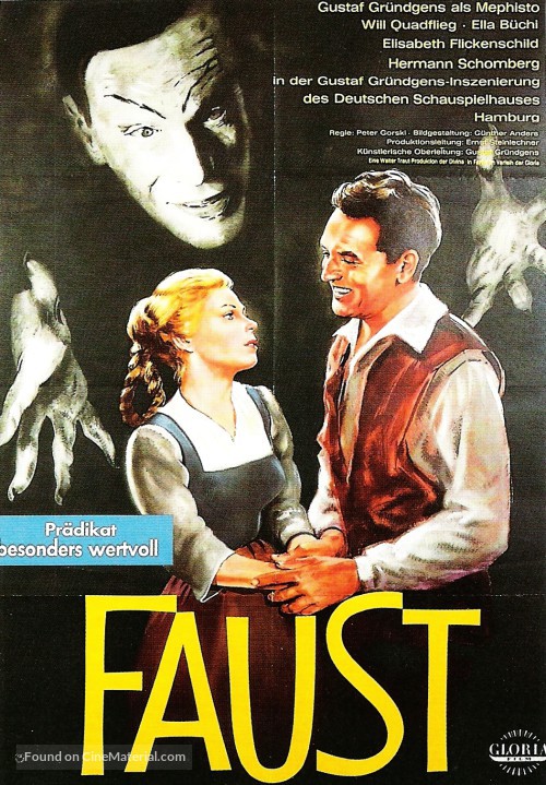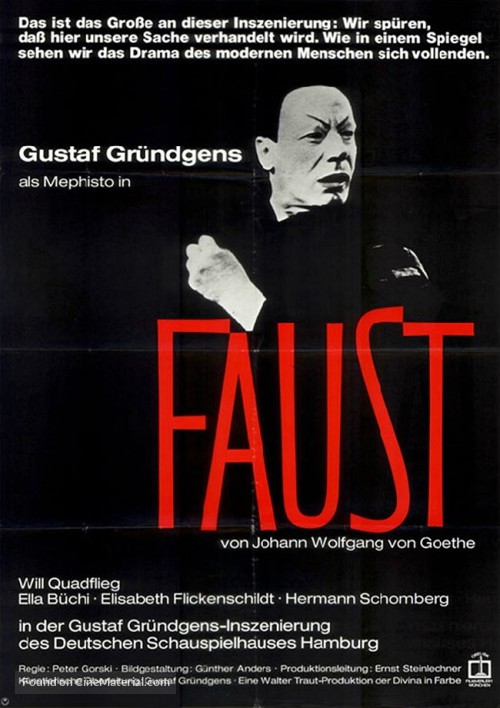 Trivia: -Mephistopheles was played by Gustaf Grundgens, who was one of Germany's most recognizable actors in the 20th century, even during the Nazi regime. His opinions on the Third Reich are a subject of debate, though.