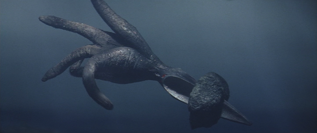 Final Fate: After Gamera breaks free of his control, Viras has his men fuse with him (by decapitating them) to grow larger. After a vicious battle, Gamera carries Viras (whose just gone through his stomach with his head!) into the atmosphere, where the alien squid freezes to death before plummeting into the ocean.