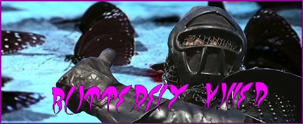 Powers/Abilities: Aside from the butterflies, the man is extremely skilled in the martial arts, dons an impenetrable suit of armor, has a grappling hook to get out of sticky situations, and wields a bizarre tennis racket-shaped weapon to lacerate victims.