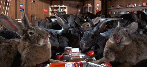 Scariness Factor: 1.5- 8-year old self will disagree with me (thanks for the childhood trauma, mister overly-ominous trailer), but this is just ridiculous. A bunch of adorable bunnies running in slow motion and killing everything is something you find in a satire. Then again...