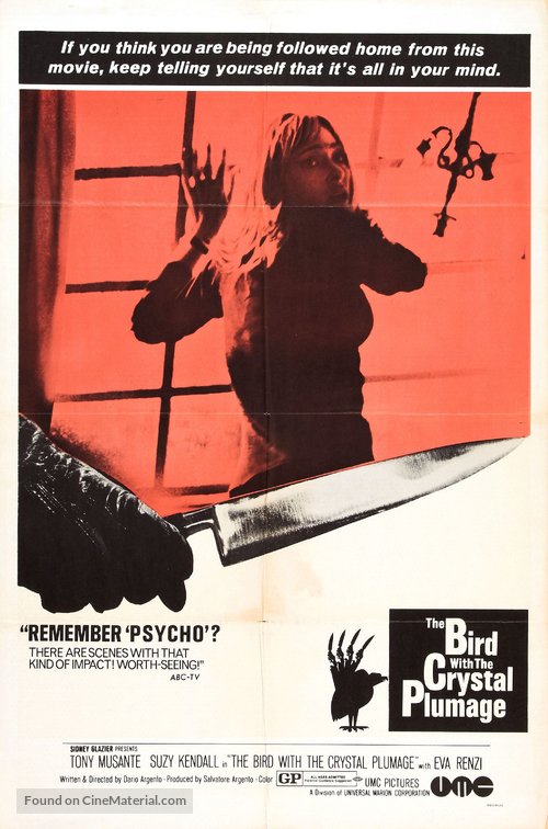 Trivia: -This film was the first in a trilogy of films by giallo film director Dario Argento known as the "Animal Trilogy". The films that would follow include 1971's "The Cat o' Nine Tails" and 1972's "Four Flies on Grey Velvet".