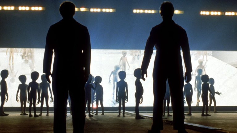 Scariness Factor: 2-Admittingly, the idea of being abducted for unknown reasons is pretty frightening, but these aliens ultimately meant well, and are kind enough to return their captives. The actual aliens are completely non-threatening in appearance, and their ships are less imposing and more spectacular in how they light up the sky. The mothership itself is basically a giant lit-up city in the sky.