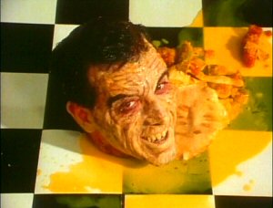 Final Fate: Soon, Alex's girlfriend has to decapitate Alex. After the body wrecks a bit of havoc, she chops away at the madman's brain, ending him for good.