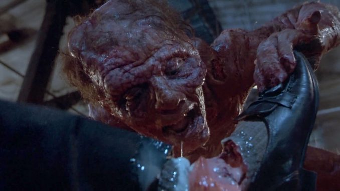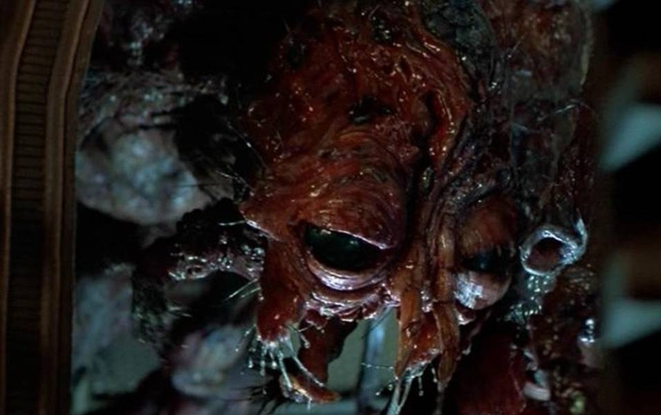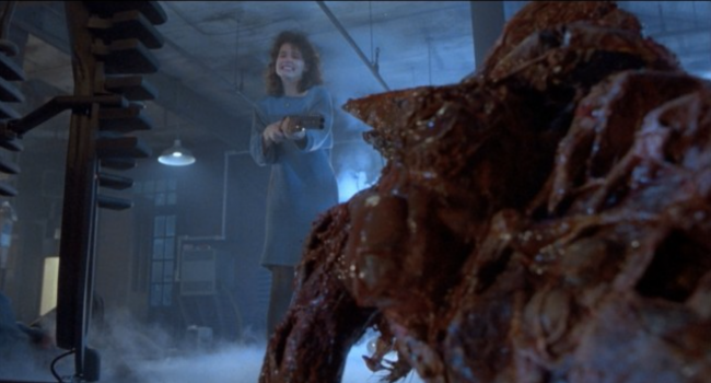 Scariness Factor: 4-The sheer amount of body horror in motion with both Brundles is staggering, to say the least. Seth has it the worst with how his body just seems to fall apart to reveal a skeletal oozing bug-man. Martin's fly form may be healthier and is much more heroic, but it looks twice as monstrous.