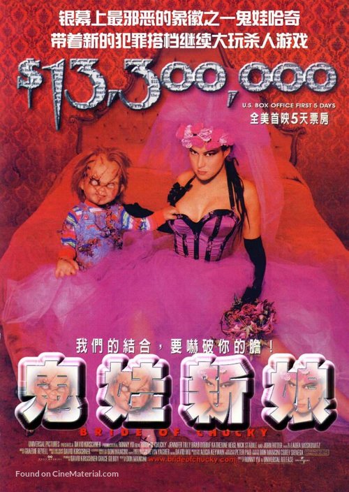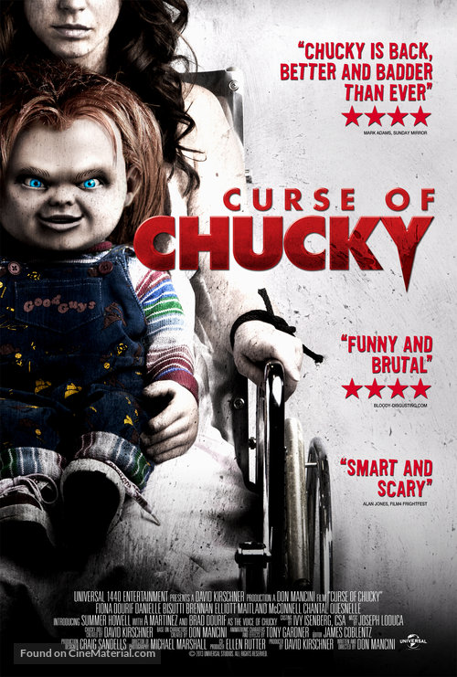 Films: Child's Play (1988), Child's Play 2 (1990), Child's Play 3 (1991), Bride of Chucky (1998), Seed of Chucky (2004), Curse of Chucky (2013), Cult of Chucky (2017)