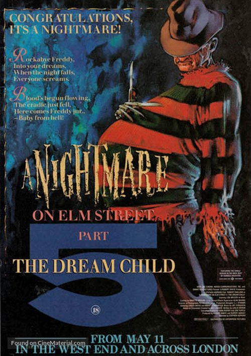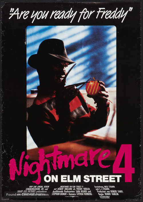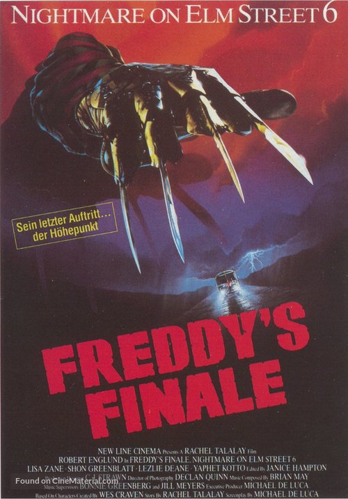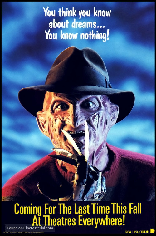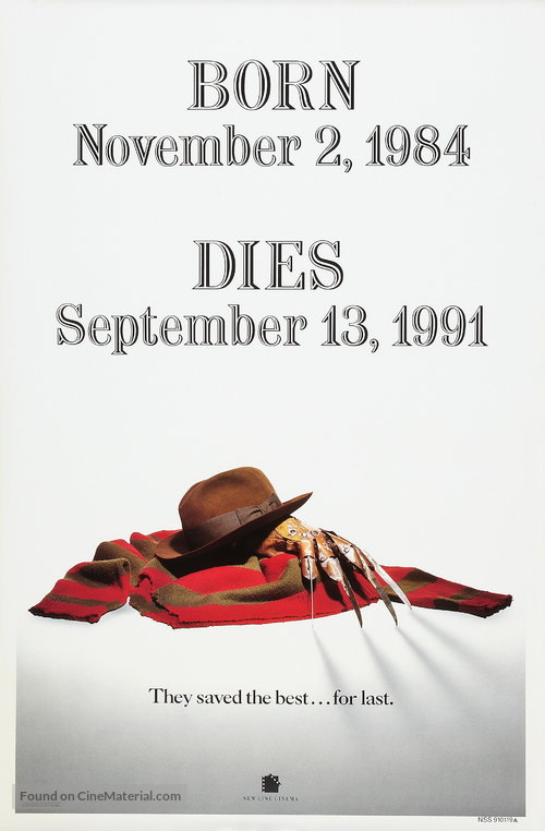 Films: A Nightmare on Elm Street (1984), A Nightmare on Elm Street 2: Freddy’s Revenge (1985), A Nightmare on Elm Street 3: Dream Warriors (1987), A Nightmare on Elm Street 4: The Dream Master (1988), A Nightmare on Elm Street 5: The Dream Child (1989), Freddy's Dead: The Final Nightmare (1991), Freddy vs. Jason (2003)