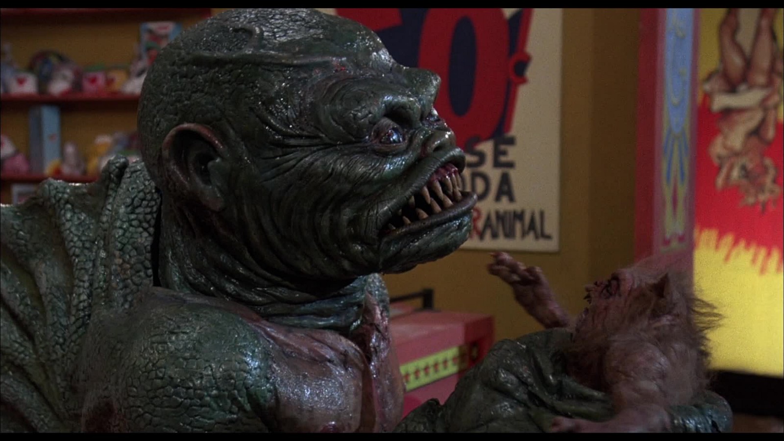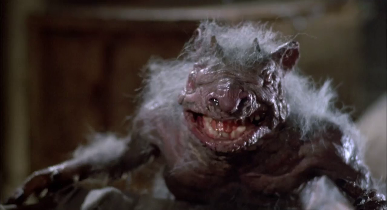 Scariness Factor: 3.5-Although a bit shoddy on the prop side of things, these little sh*ts are rather vicious-looking, and have one Hell of a taste for cruelly killing people. That said, their fright sort of diminished as time went on, particularly in the budget...