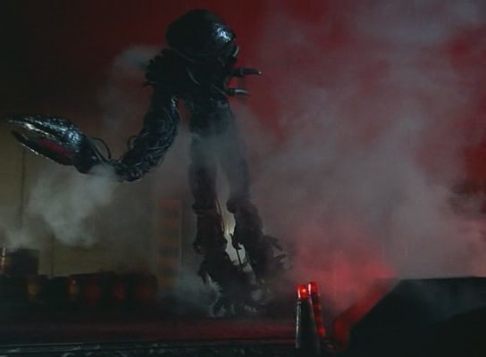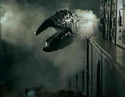 Scariness Factor: 2.5-It's a damn shame, really. This thing has a fantastic and intimidating design, and yet it's all completely ruined by the fact that it can't stand straight to save its own life. It's so big that it needs to be hung up by the effect's artists like a puppet on a shoddy marionette.