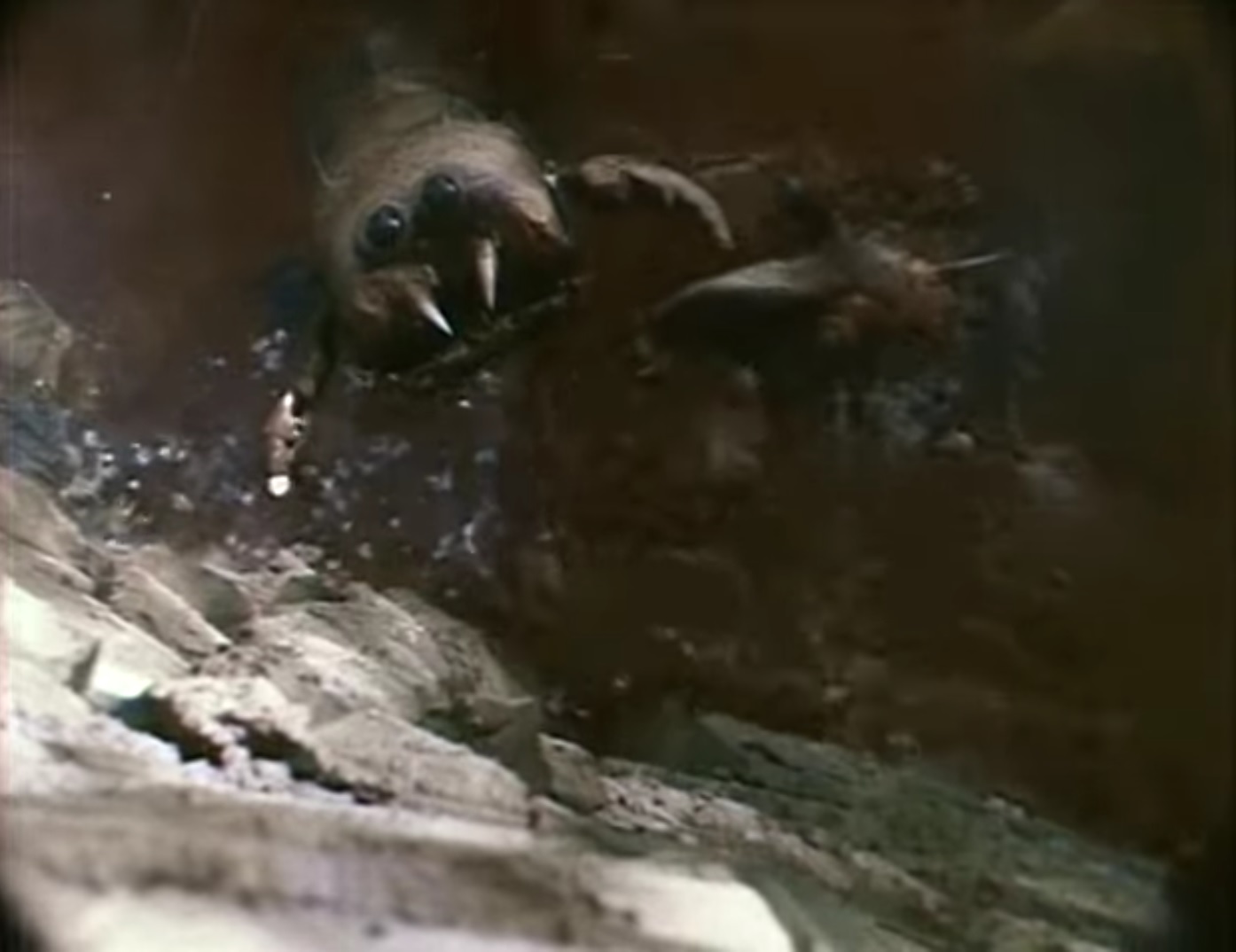 Scariness Factor: 3-Most of the monsters here are portrayed by unconvincing props or slightly off-kilter stop motion animation. In other words, true fright is hard to come by. One possible candidate for legitimate fear is the Swamp Critter, mainly for its grotesque design and how in its element it mostly is.