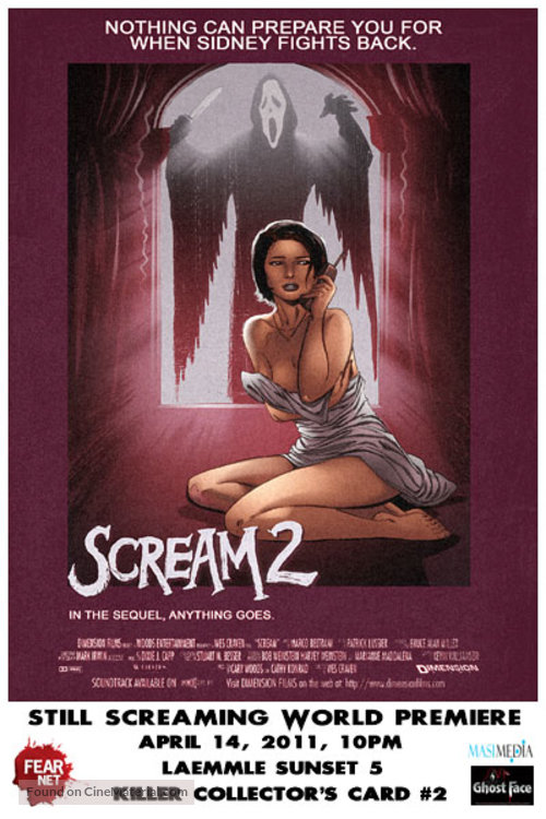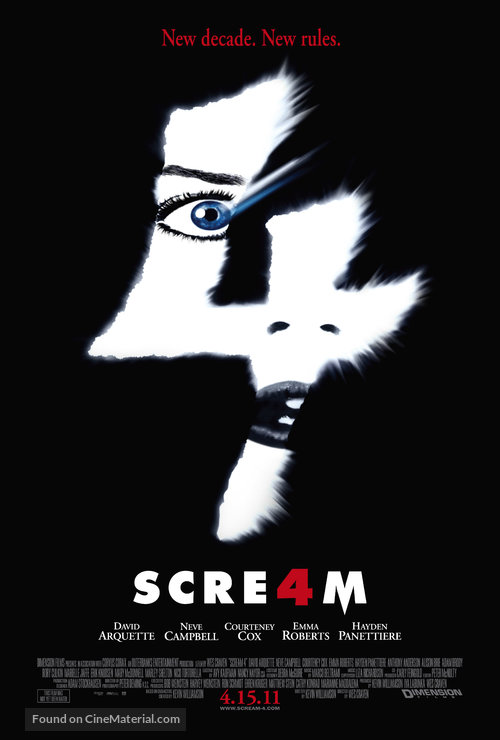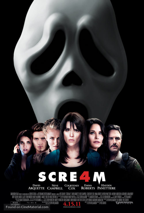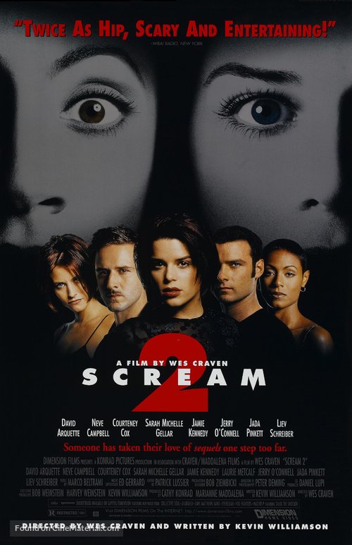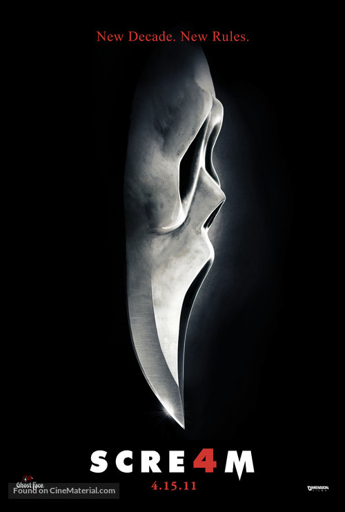 Films: Scream (1996), Scream 2 (1997), Scream 3 (2000), Scream 4 (2011), Scream (2022), Scream VI (2023)