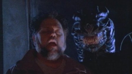 Scariness Factor: 3-Aside from the fact that we barely see it, it is painfully obvious that the guy in the suit cannot see a damn thing. Almost hilariously authentic, considering that the beast doesn't have any eyes either. A shame that this thing looks so menacing in still-shots.