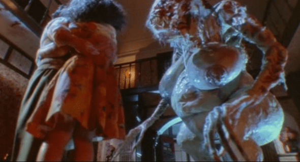 History: Skull Island still exists, but instead of a big ape, explorers decided to bring back the Sumatran Rat-Monkey, a horrible little beast that is said to be used in dark rituals back on the island. One day, it bites the vindictive and domineering single mother Vera Cosgrove before she crushes it under her heel. Unfortunately, the little bastard's bite has infected her with a virus that turns her into a ravenous zombie capable of infecting others. Now her son Lionel has his work cut out, as zombie family members, neighbors, and even babies threaten to tear him and his hometown apart.