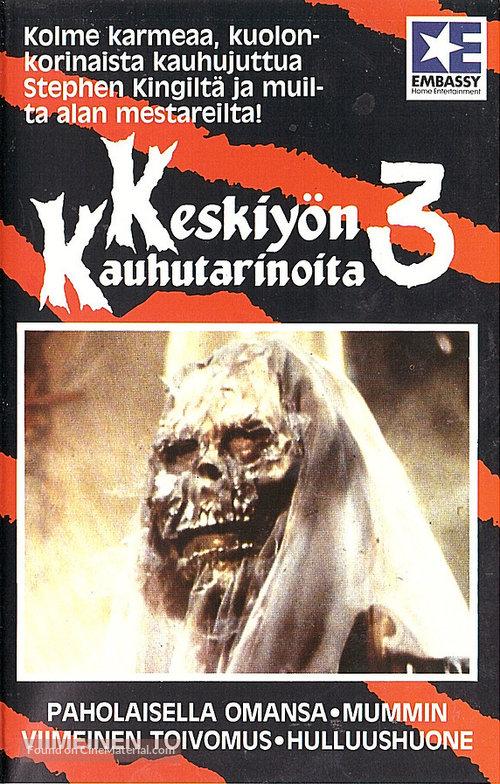 Final Fate: The mummy is chopped to pieces and burned before it can wreck any more havoc (though its victims are reanimated instead), the cat kills its hunter by jumping down his throat, and the Gargoyle is revealed to be the wife after he breaks his promise, killing him and taking her Gargoyle children to sit as statues above him in remorse. As for that witch, she got tricked into stabbing herself and getting put in her own oven.